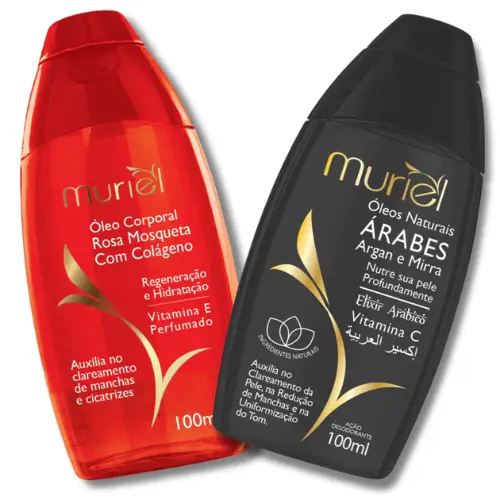 O Kit com 2 Óleos de Amêndoas Muriel é o cuidado que transforma sua pele desde a primeira aplicação. Com textura leve, rápida absorção e hidratação profunda, ele deixa a pele macia, nutrida e luminosa — sem sensação oleosa. Um aliado poderoso na prevenção de estrias e totalmente seguro para gestantes e lactantes. São 2 unidades de 100ml com fragrâncias irresistíveis para você escolher a que mais combina com seu momento. Qualidade comprovada, cuidado diário e um toque de carinho que sua pele merece.